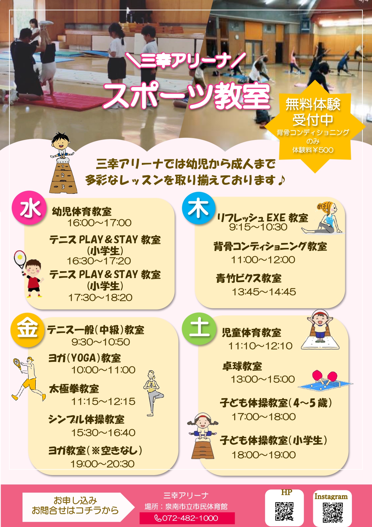 【三幸アリーナ スポーツ教室🏃 ご案内】
