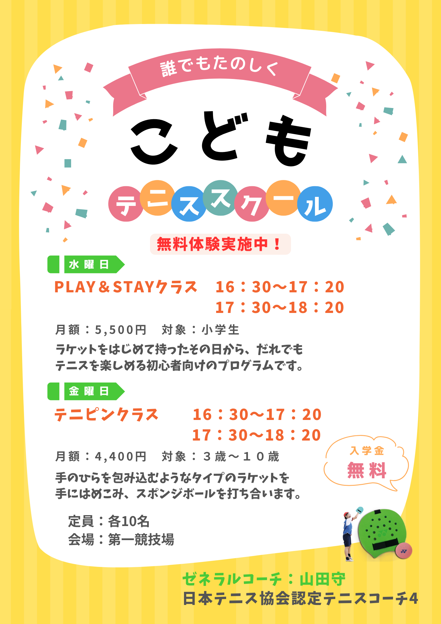 はじめてテニスにふれるお子さまも楽しめるクラスです!