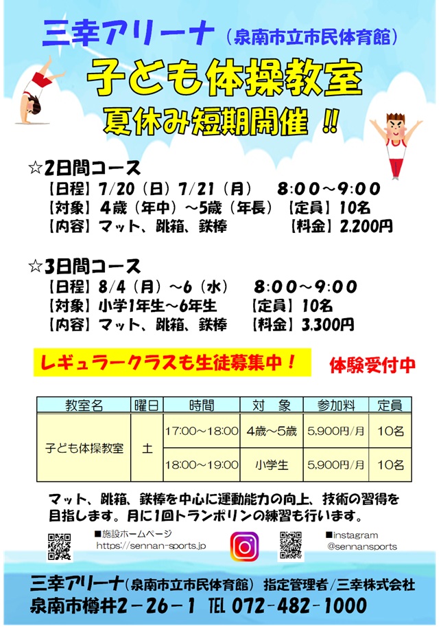 【三幸アリーナ スポーツ教室🏃 ご案内】