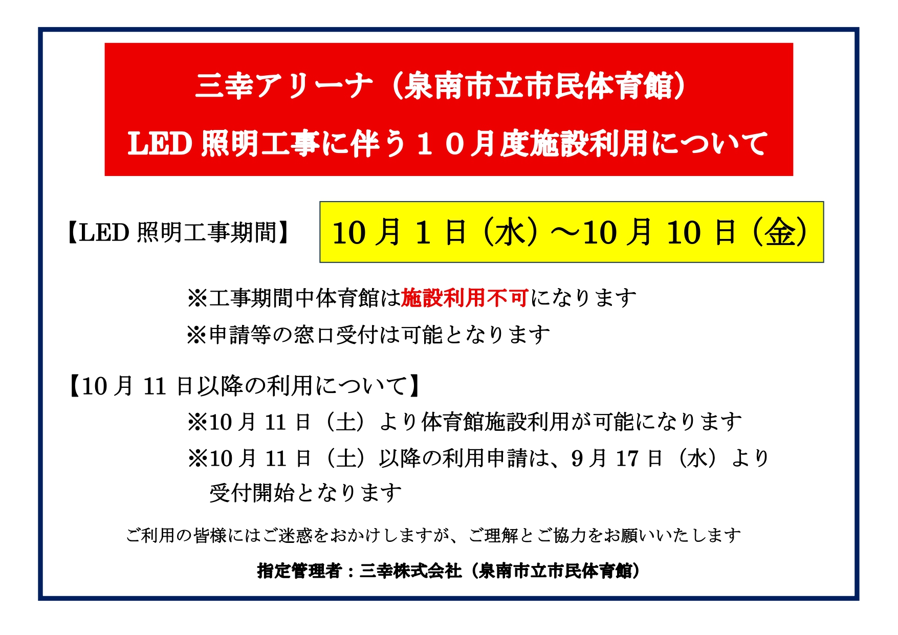 場所:泉南市市立市民体育館 ☎072-482-1000